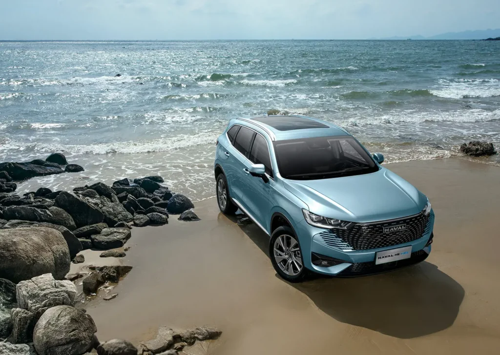 GWM Haval H6 HEV hadir dengan desain SUV modern yang aerodinamis dan futuristik. Gril depan besar dengan pola jaring krom memberikan kesan premium, sementara lampu LED tipis dengan desain tajam menambah kesan agresif. Bagian samping menampilkan garis bodi yang elegan dengan handle pintu tersembunyi, serta pelek alloy berukuran 19 inci yang memperkuat tampilan sporty. Di bagian belakang, lampu LED berbentuk horizontal menyatu dengan desain bumper yang kokoh, memberikan tampilan yang lebih modern dan dinamis.